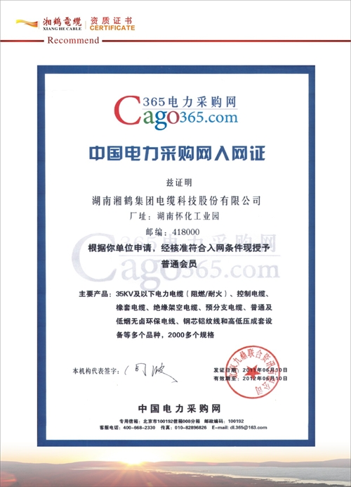 中國電力采購入網(wǎng)證