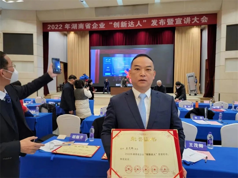 2022年12月15日,由湖南省科協(xié)聯(lián)合省工商聯(lián)、省科技廳、省工信廳、省國(guó)資委共同組織舉辦的2022年湖南省企業(yè)“創(chuàng)新達(dá)人”發(fā)布暨宣講大會(huì)在長(zhǎng)沙舉辦。省科協(xié)黨組書(shū)記、常務(wù)副主席王瑰曙出席大會(huì)并致辭,省工商聯(lián)黨組成員、秘書(shū)長(zhǎng)陳夕林,省工信廳黨組成員、副廳長(zhǎng)彭濤,省國(guó)資委黨委委員、副主任毛育新,省科協(xié)副主席李為、周后德,省科協(xié)黨組成員、辦公室主任馬文勝出席活動(dòng)并為“創(chuàng)新達(dá)人”頒發(fā)獎(jiǎng)杯和證書(shū)。